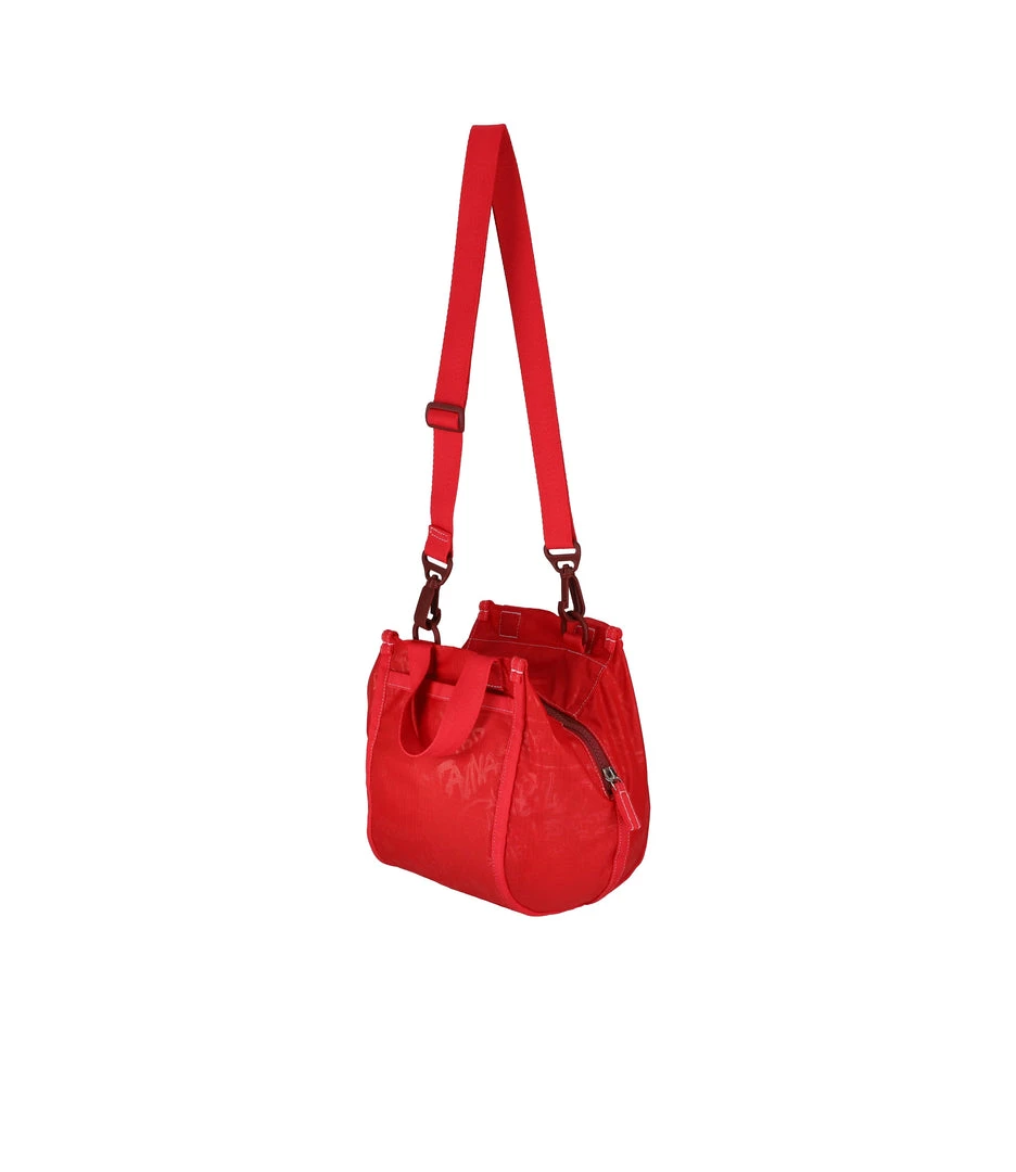 Made using 5 recycled plastic bottles, Zipped main closure, Exterior front zip pocket, Exterior back open pocket with magnetic snap closure, 1in/2.5cm wide top handles (Drop: 4in/10.2 cm, Length : 9.4in/24cm), 1in/2.5cm wide adjustable/detachable shoulder strap (Max length: 50 in/127 cm, Min length: 26.3 in/67 cm)