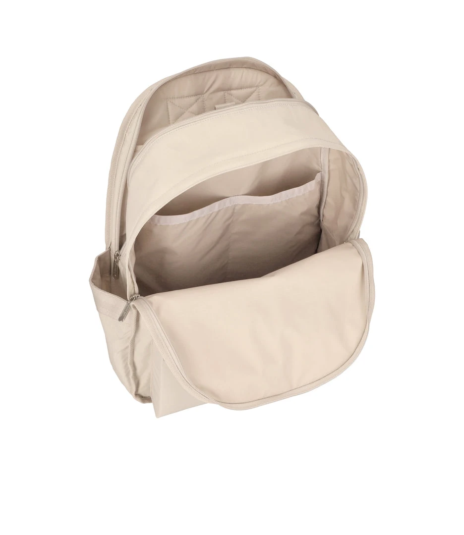 Features two zip closure compartments with dual zipper pulls, 1in/2.5cm top loop handle (Drop: 2.2in/5.5cm), Padded shoulder straps (Length: 18.5in/47cm), Exterior front zip closure pocket, Exterior back panel features a zip closure cell phone pocket on the side, Two exterior side open top pockets, Interior of front compartment features two open pockets on the interior back wall, Interior of back compartment features a laptop pocket with Velcro tab closure (for 13in laptops) and a combination zip/open pocket (on front of the laptop pocket)