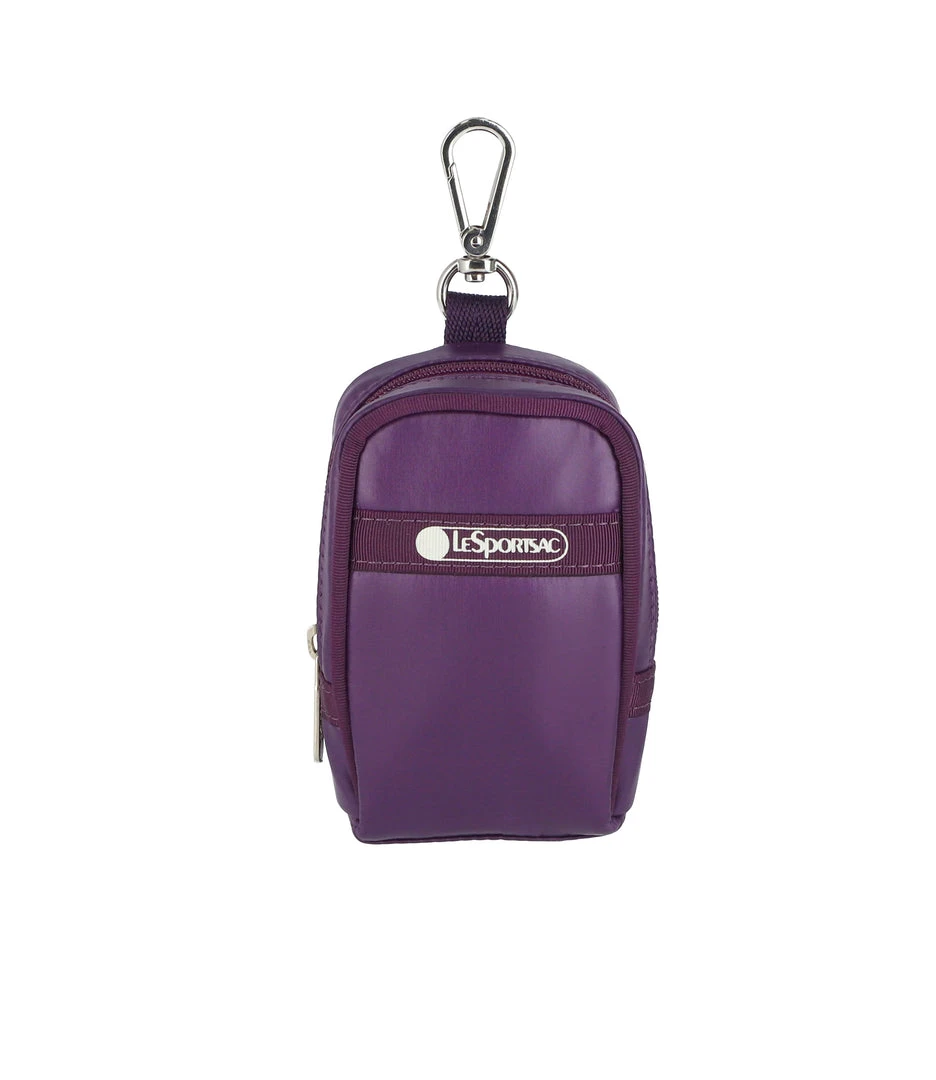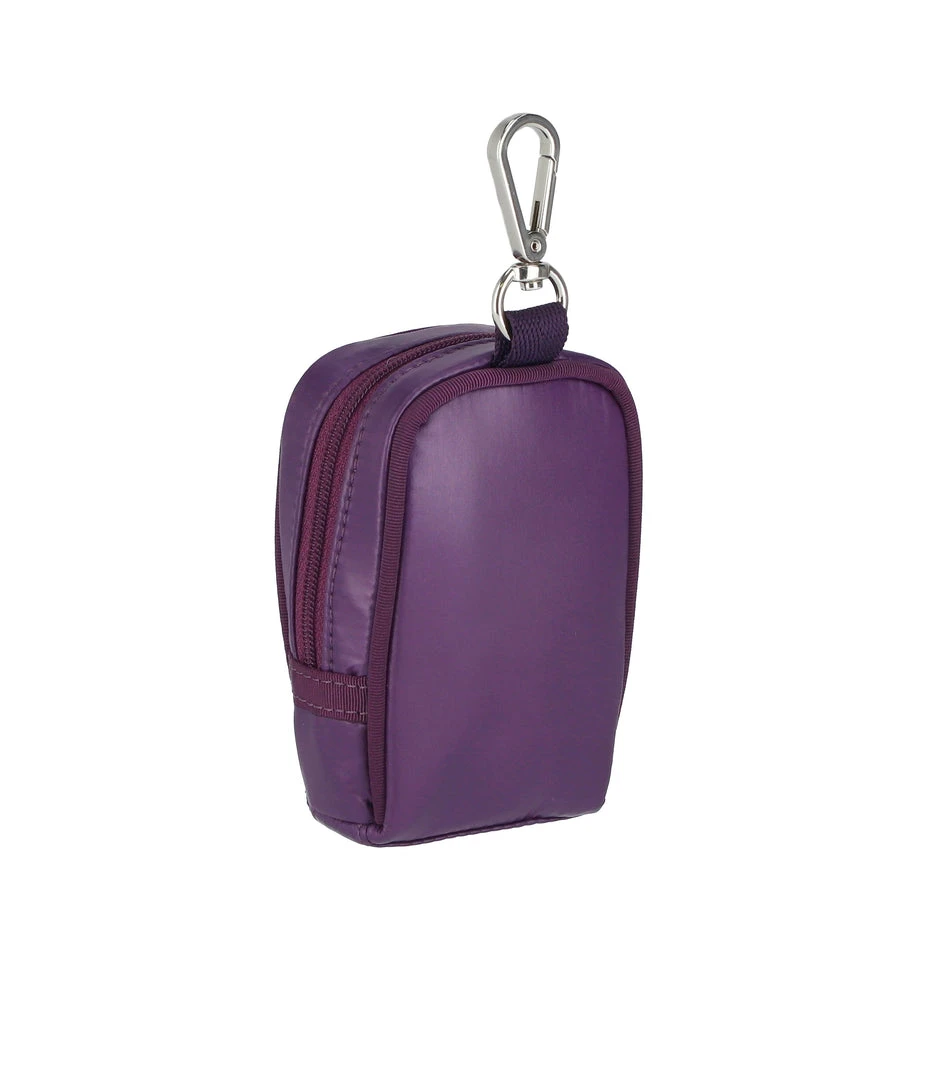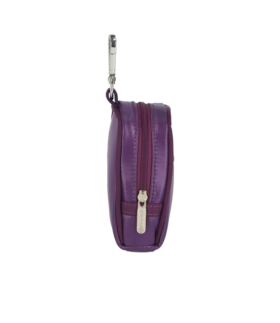 Small zip closure pouch with top metal clip (to attach on your bag or key ring). Fits a variety of small items such as: wireless earbuds, lip balm, travel sized hand sanitizer, and coins.