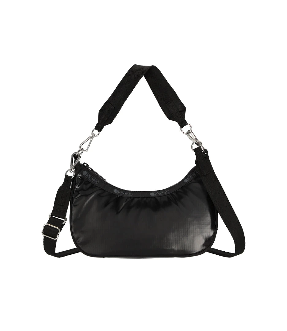 Zip top main closure, Interior back wall open pocket, Two detachable strap options: Short Strap – 1.5in/3.8cm wide non-adjustable strap (drop of 8.46 in/21.5 cm and a length of 15in/38 cm) and Long Strap – 1in/2.5cm wide adjustable/detachable crossbody strap (min length: 24.8 in/63 cm and max length: 42 in/108 cm, ), Metal hardware
