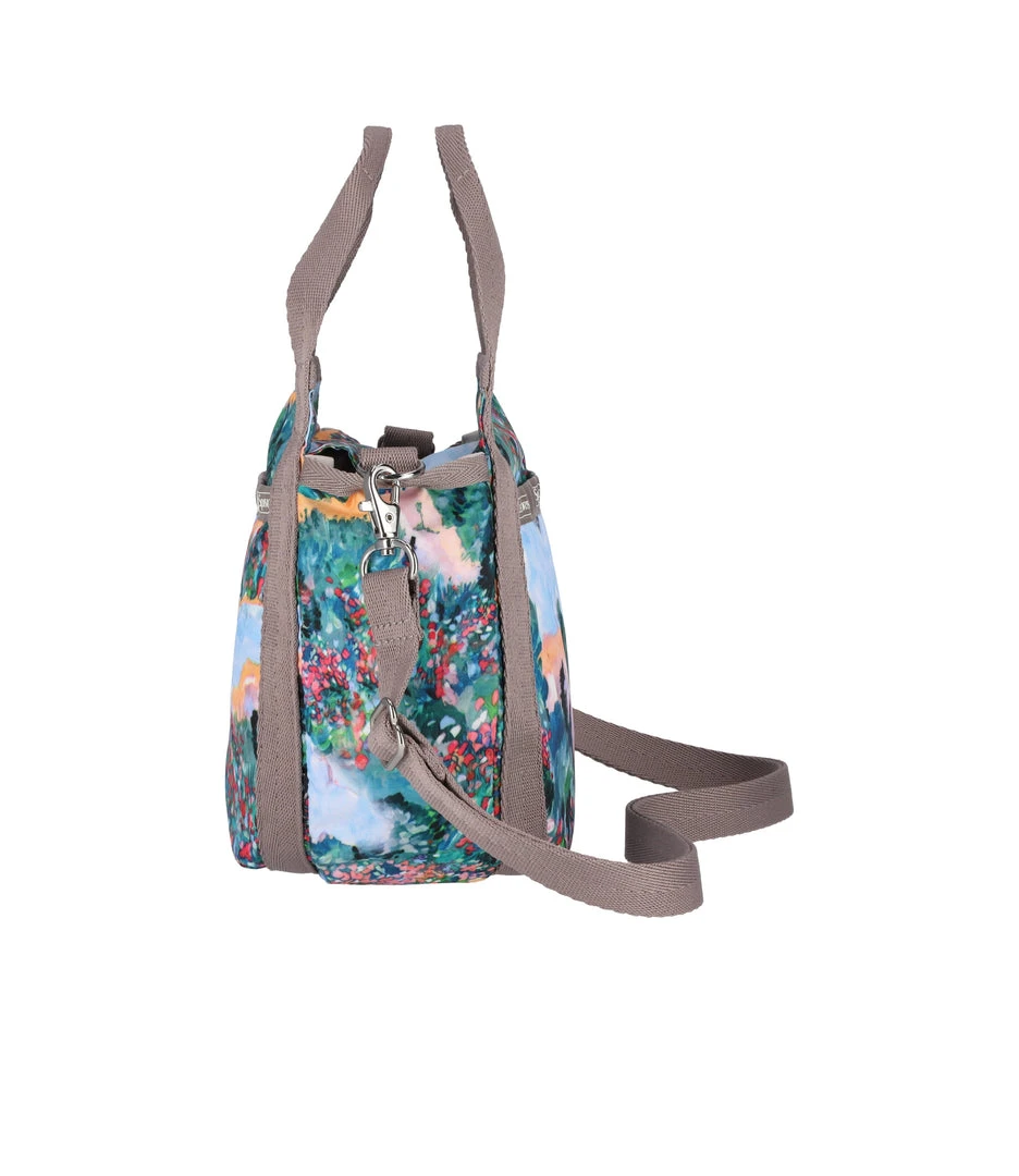 Zip main closure, 4in (10.16cm) Top handle drop, Adjustable/detachable strap (Max. 50 in/127 cm), Exterior front pocket with zip closure, Exterior back open top pocket, Interior back wall signature zip/open pocket, Interior front wall open cell phone pocket