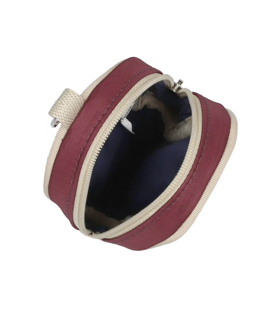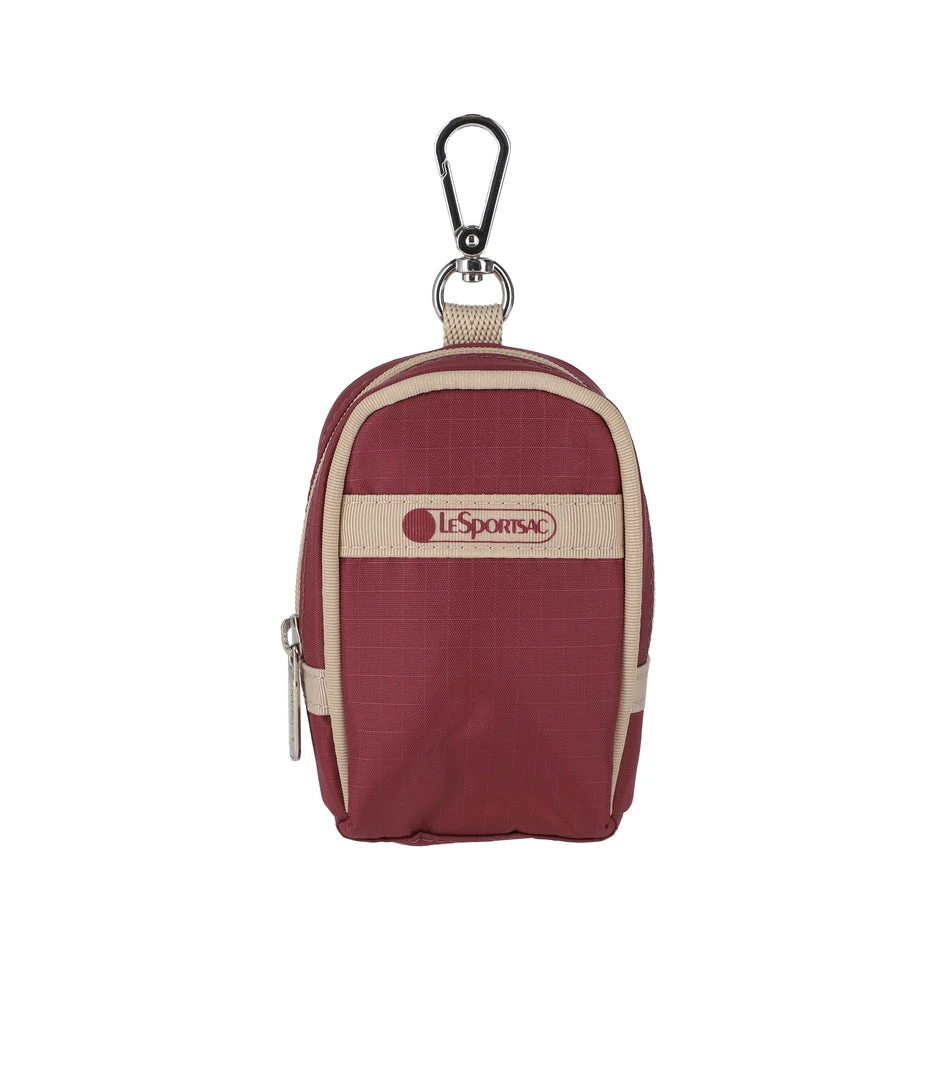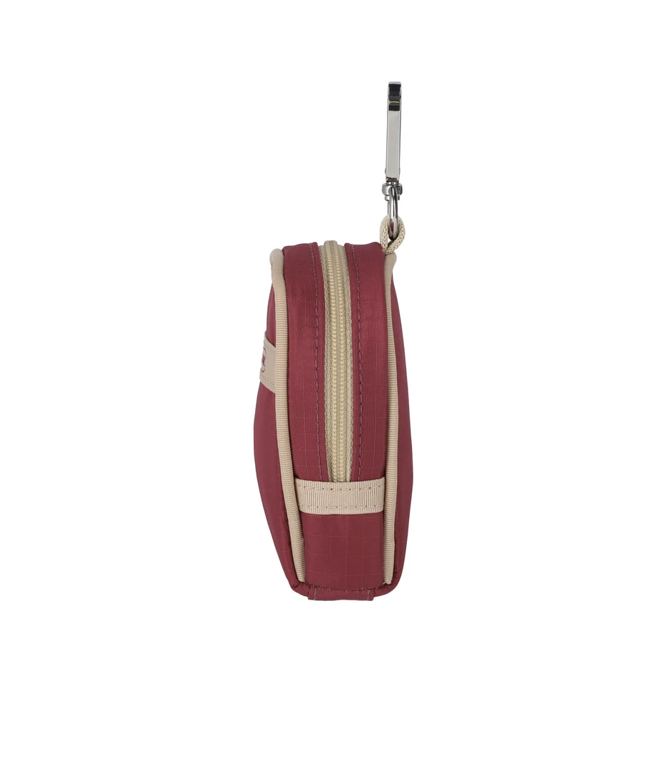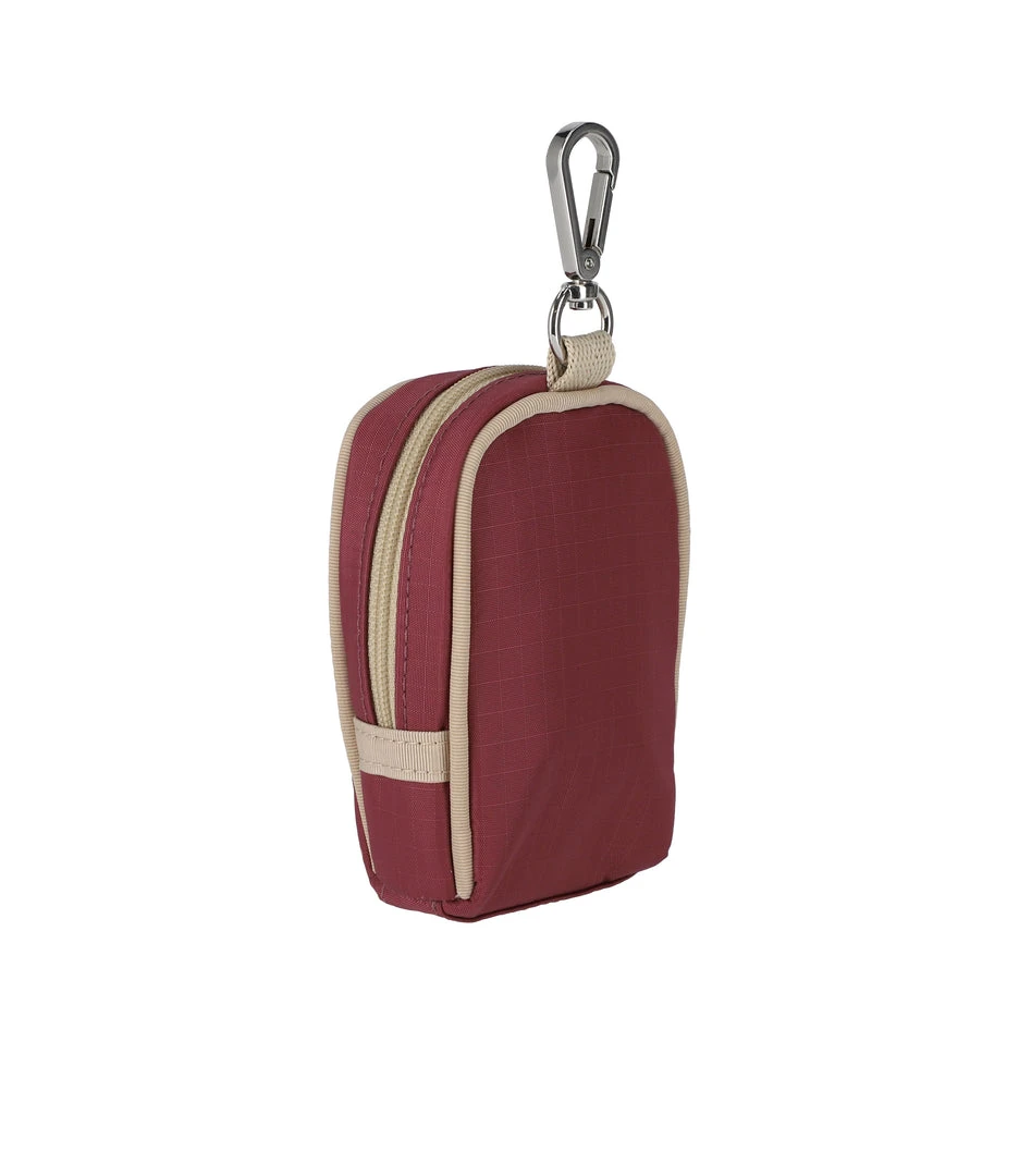 Small zip closure pouch with top metal clip (to attach on your bag or key ring). Fits a variety of small items such as: wireless earbuds, lip balm, travel sized hand sanitizer, and coins.