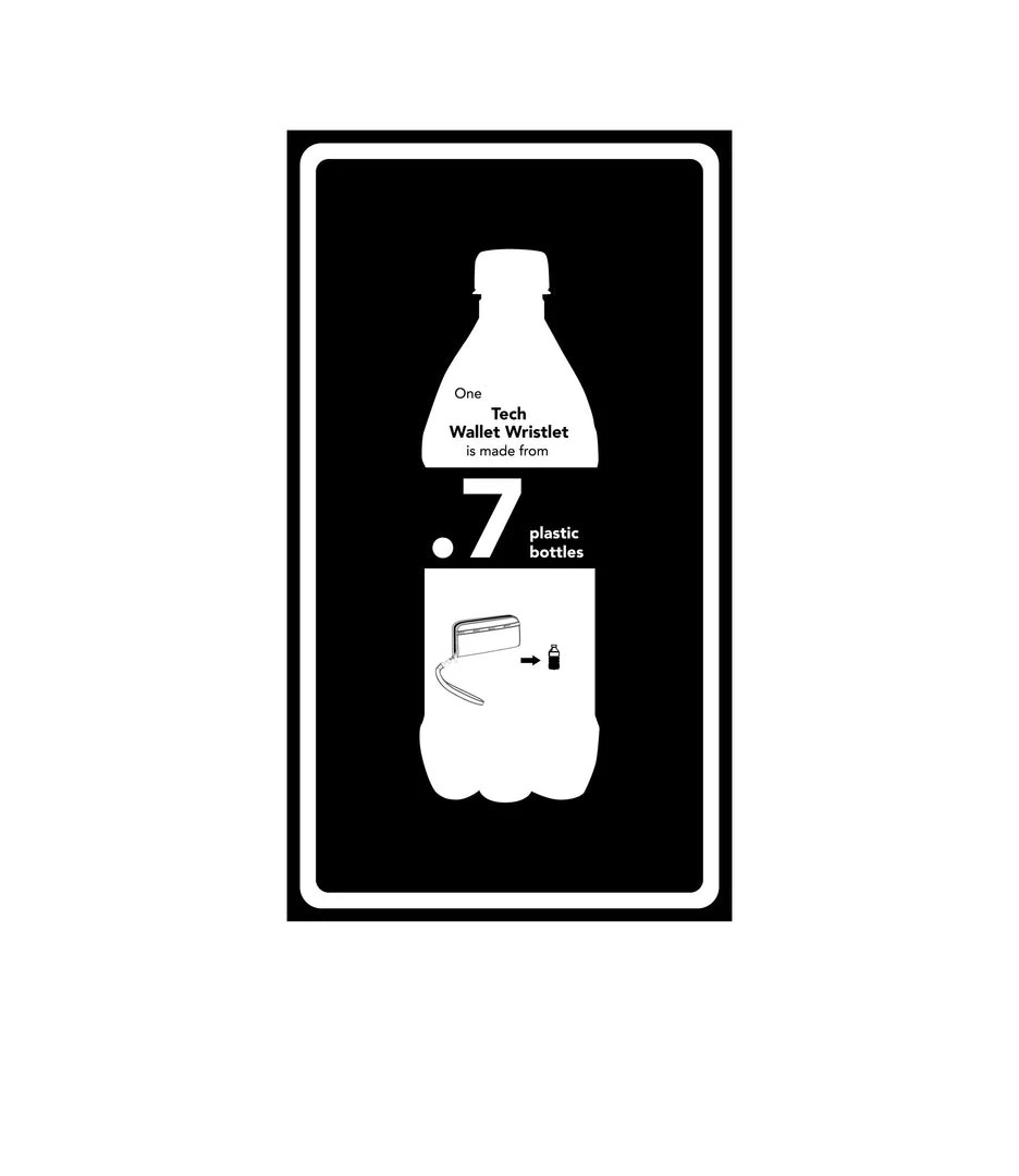 Made using 0.7 recycled plastic bottles, Zip around main closure, Exterior front open pocket, Detachable wristlet strap (0.5in/1.3cm wide webbing strap with a total loop length of 6.5 in/16.5 cm from end to end), Interior features eight total card slots and two full-length bill pockets, Interior center zip closure pocket for coins, Interior open cell phone pocket, Two Interior gusset pockets (to hold receipts, pens or additional paper currency)