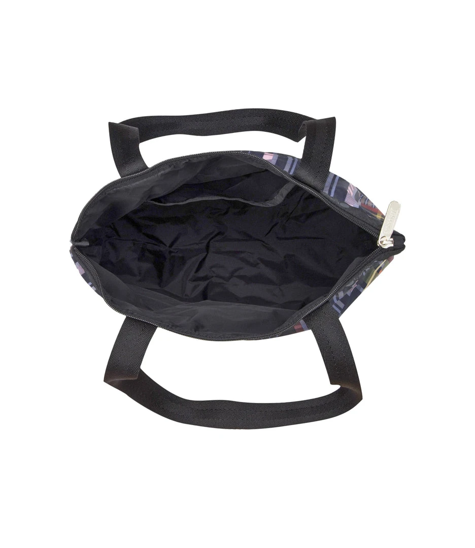 Zipped main closure, 1in (2.5cm) wide top handles (Length: 24.6 in/62.5 cm), Interior back wall combination zip/open pocket