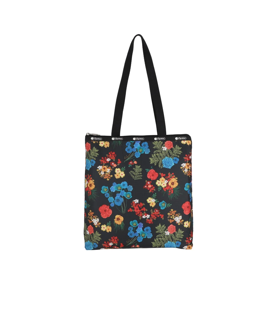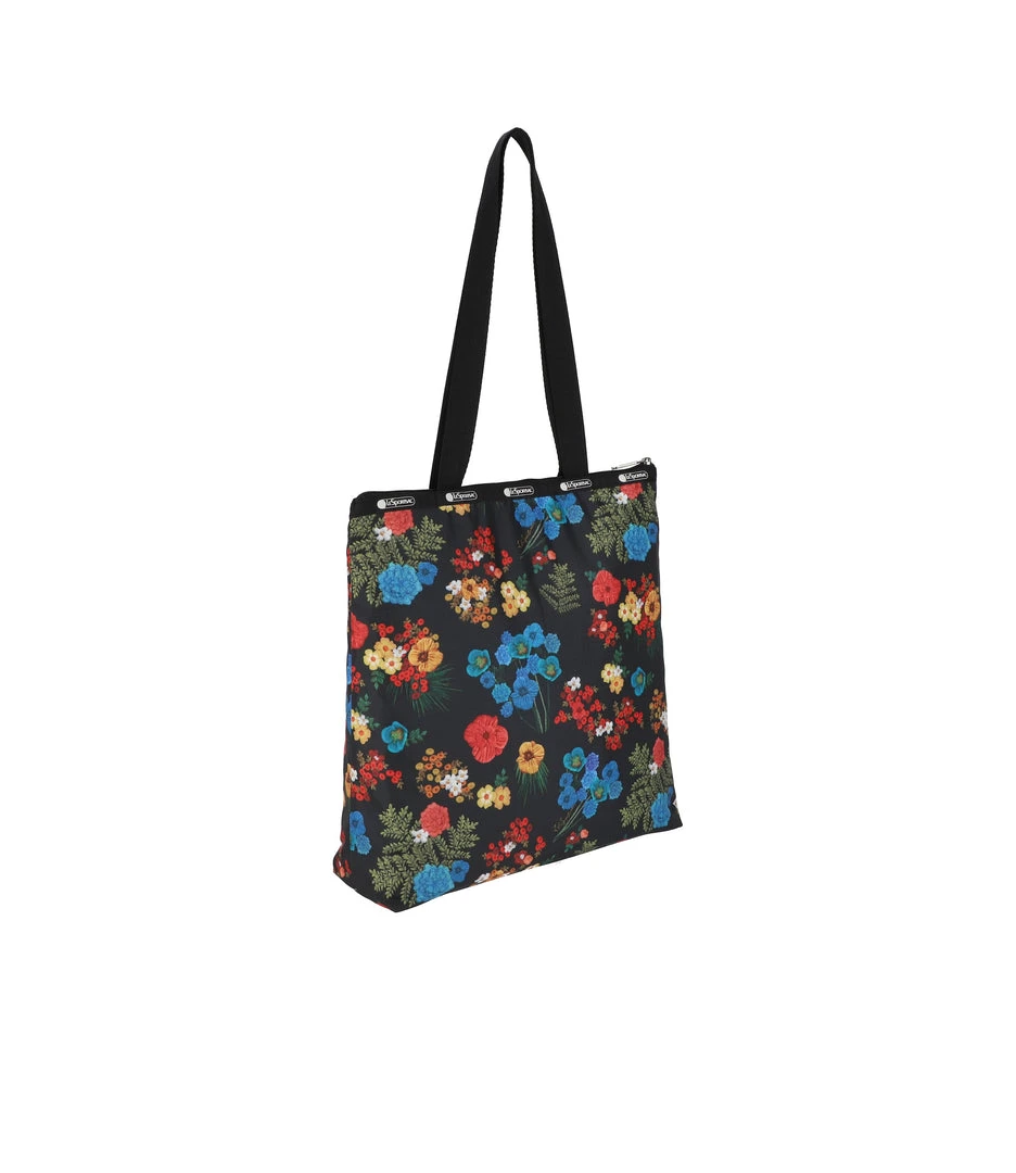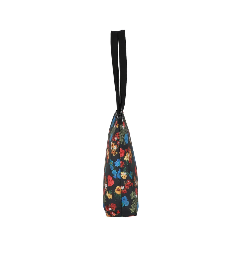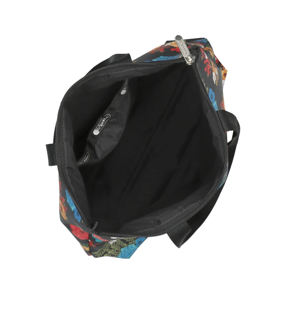 Zipped main closure, 1in (2.5cm) wide top handles (Length: 24.6 in/62.5 cm), Interior back wall combination zip/open pocket