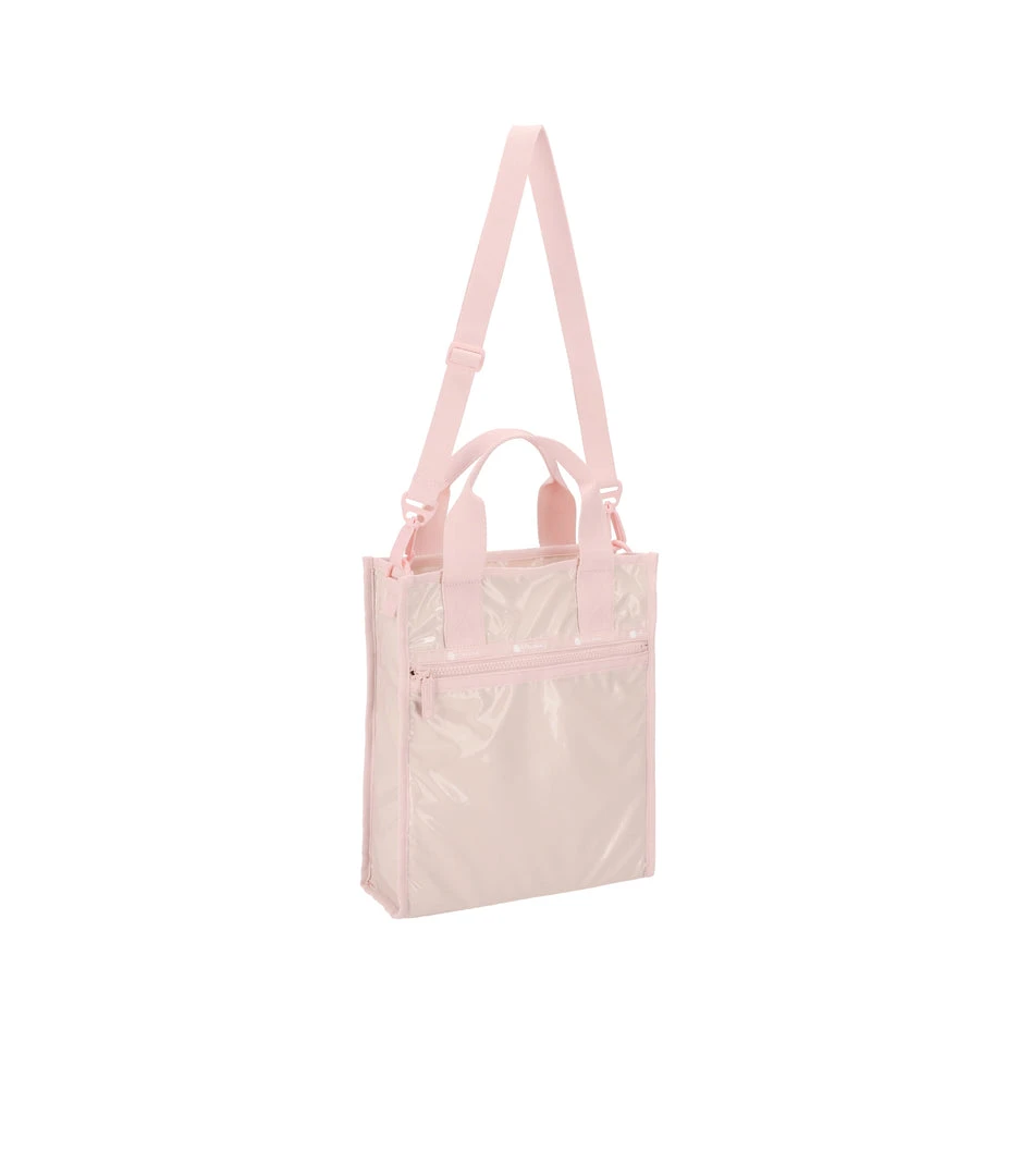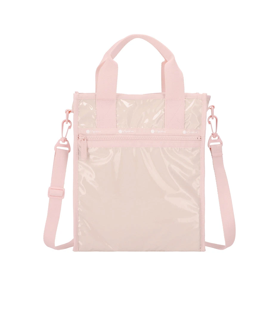 Coastal Latte Patent is creamy latte colored patent fabric with subtle holographic sheen and pastel pink trim.