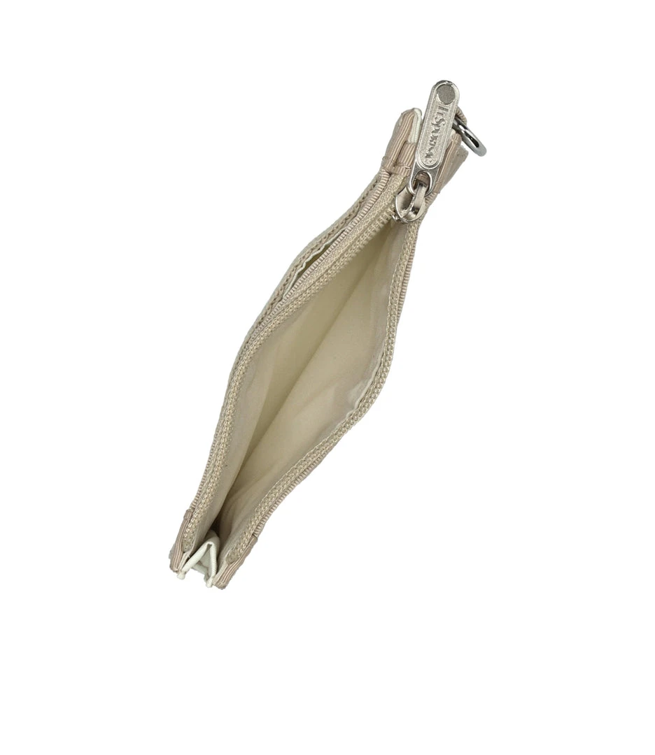 •Small zip closure pouch (can hold credit/ID cards, coins, and folded cash)